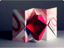 Tips2:将盒底的三角形折起,就可以如图示收藏许许多多的纸盒,轻松不占空间。