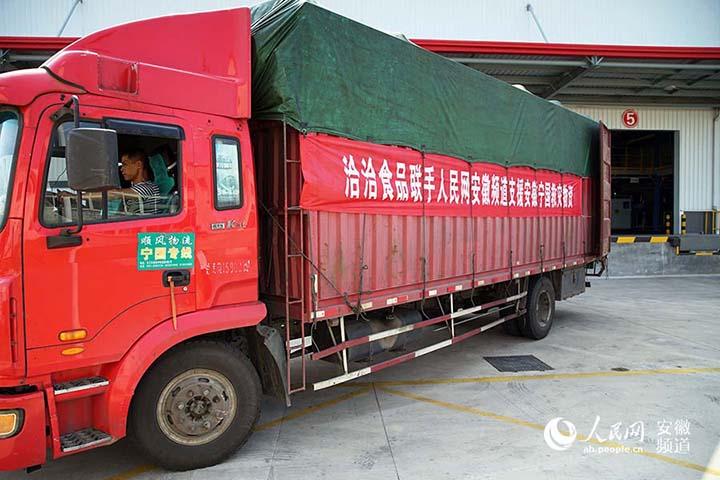 8月13日下午3时,满载救援物资的卡车从合肥洽洽食品仓库出发,发往受灾严重的宁国市南极乡,预计今天晚上抵达灾区。(蒙西)