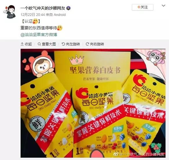收到“新鲜出炉”的《坚果营养白皮书》,大家纷纷在微博上晒图引发了很多网友的点赞和评论,字里行间透露着对白皮书的喜爱及对洽洽坚果的拥趸。