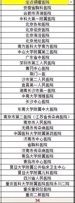 (洽洽第二批物资捐赠的全国34家定点医院名单)
