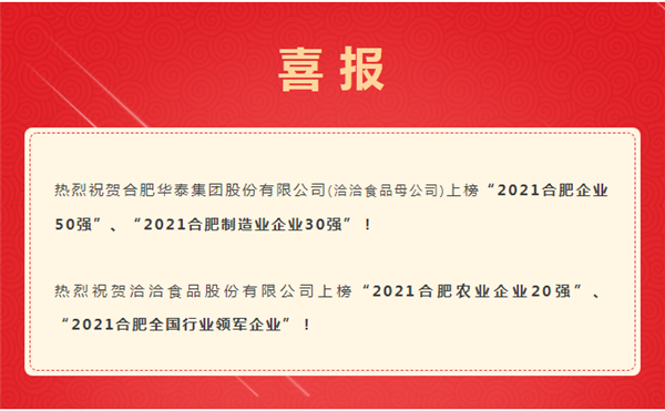 合肥企业50强榜单出炉!洽洽食品荣登榜单!