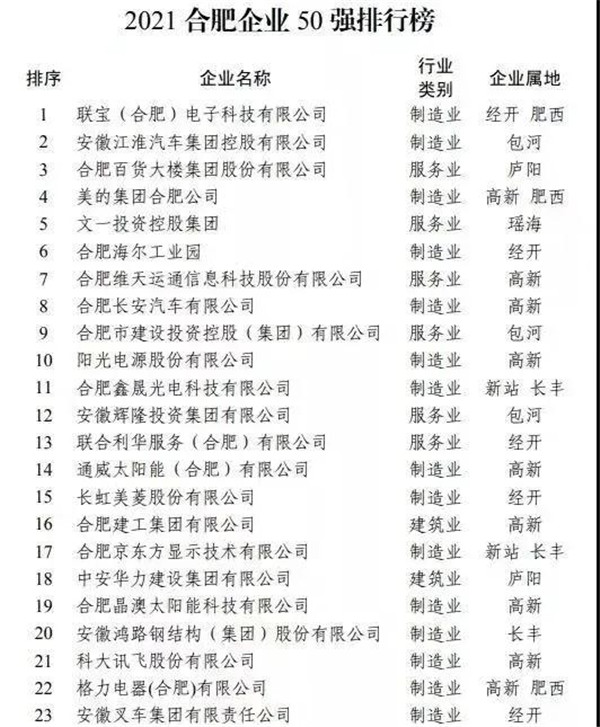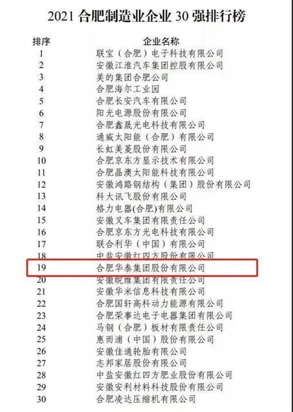 10月19日上午,2021合肥企业50强发布会在合肥市政务中心举行。会上发布了2021合肥企业50强榜单。合肥华泰集团股份有限公司上榜“2021合肥企业50强”、“2021合肥制造业企业30强”!